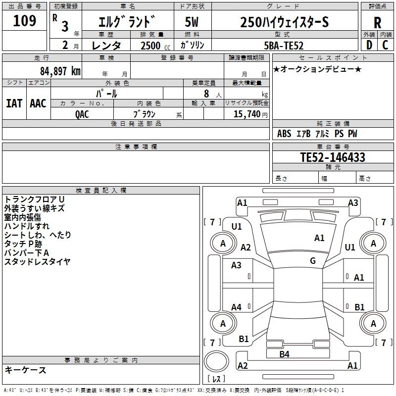 NISSAN ELGRAND 2021 г., лот № 109