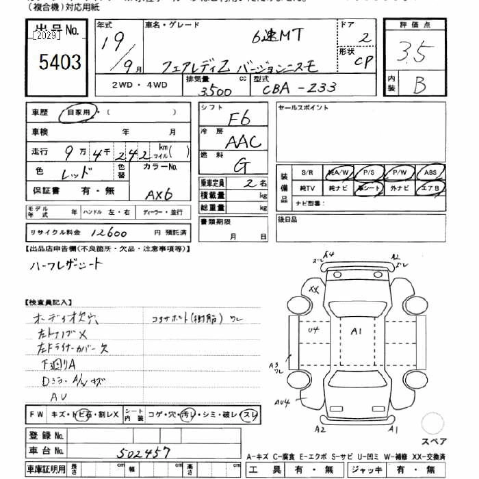 | ROADSTER | CBA-HZ33 | VQ35HR | FR | 6MT | 3498cc | 313ps(230kW)/6800rpm | AИ-95 | 3 895 500 | |