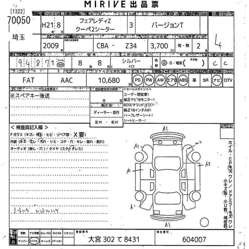 | BASE GRADE | CBA-Z34 | VQ37VHR | FR | 7AT | 3696cc | 336ps(247kW)/7000rpm | AИ-95 | 3 748 500 | |