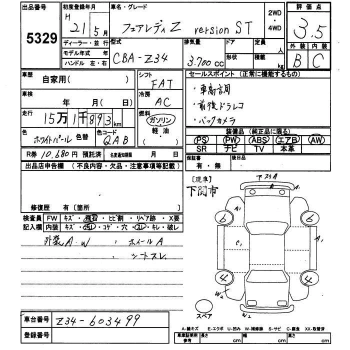 | BASE GRADE | CBA-Z34 | VQ37VHR | FR | 7AT | 3696cc | 336ps(247kW)/7000rpm | AИ-95 | 3 748 500 | |