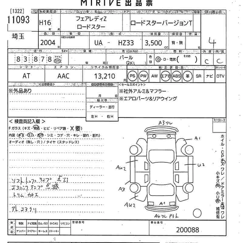 | ROADSTER | UA-HZ33 | VQ35DE(NEO) | FR | 6MT | 3498cc | 280ps(206kW)/6200rpm | AИ-95 | 3 675 000 | |