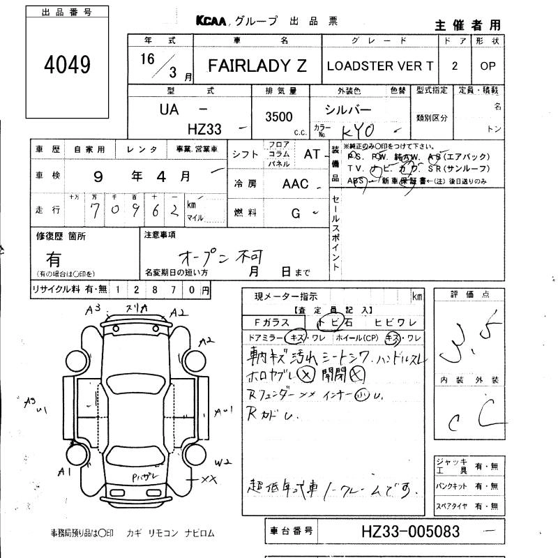 | BASE GRADE | CBA-Z33 | VQ35DE(NEO) | FR | 6MT | 3498cc | 280ps(206kW)/6200rpm | AИ-95 | 3 150 000 |