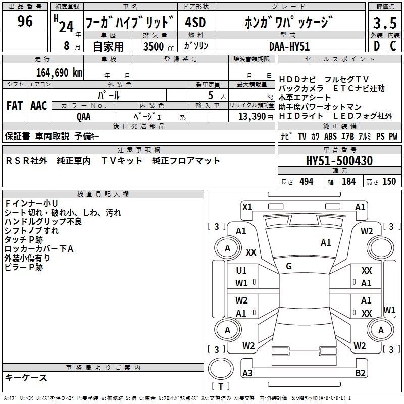 | A PACKAGE | DAA-HY51 | VQ35HR | FR | 7AT | 3498cc | 306ps(225kW)/6800rpm | AИ-95 | 5 397 000 |