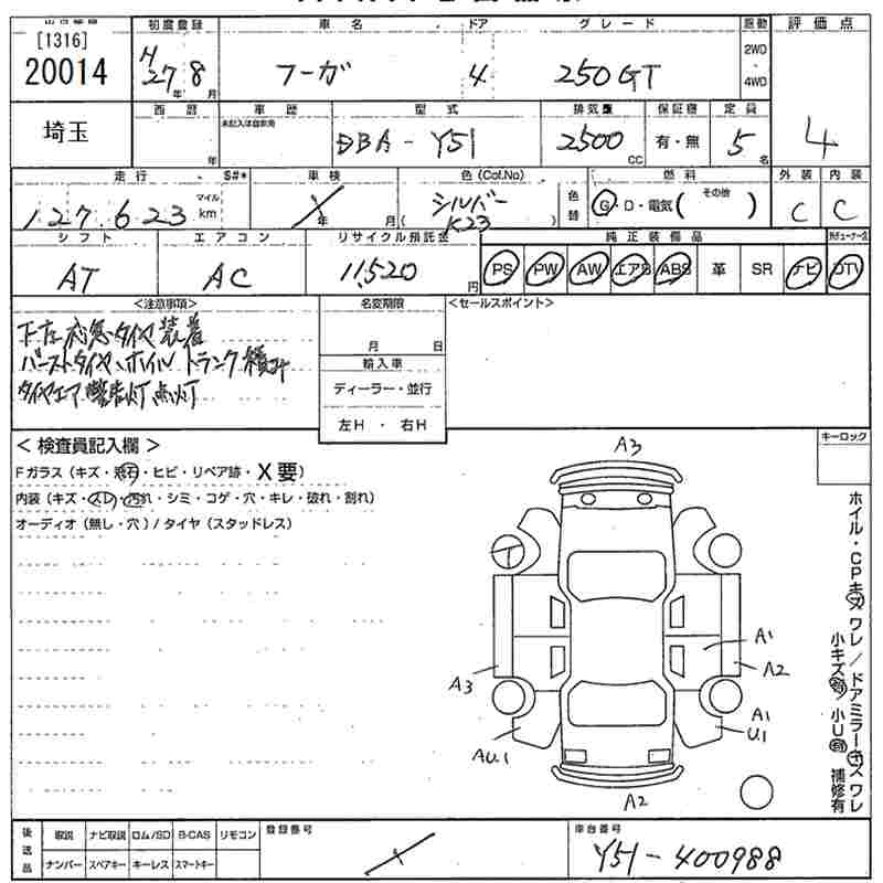 | 250GT A PACKAGE | DBA-Y51 | VQ25HR | FR | 7AT | 2495cc | 225ps(165kW)/6400rpm | AИ-95 | 4 104 000 |