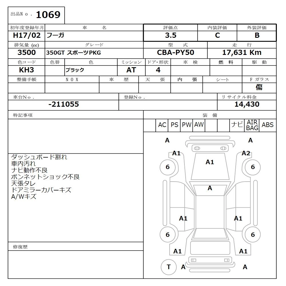 | 350GT STYLISH BLACK LIMITED | CBA-PY50 | VQ35DE(NEO) | FR | 5AT | 3498cc | 280ps(206kW)/6200rpm | AИ-95 | 4 383 750 | |