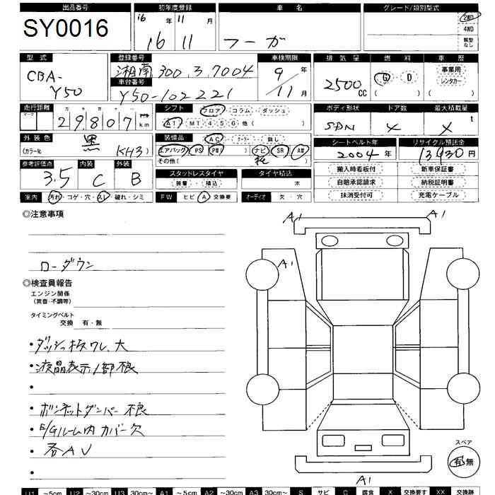 | 350XV | CBA-PY50 | VQ35DE(NEO) | FR | 5AT | 3498cc | 280ps(206kW)/6200rpm | AИ-95 | 4 200 000 | |