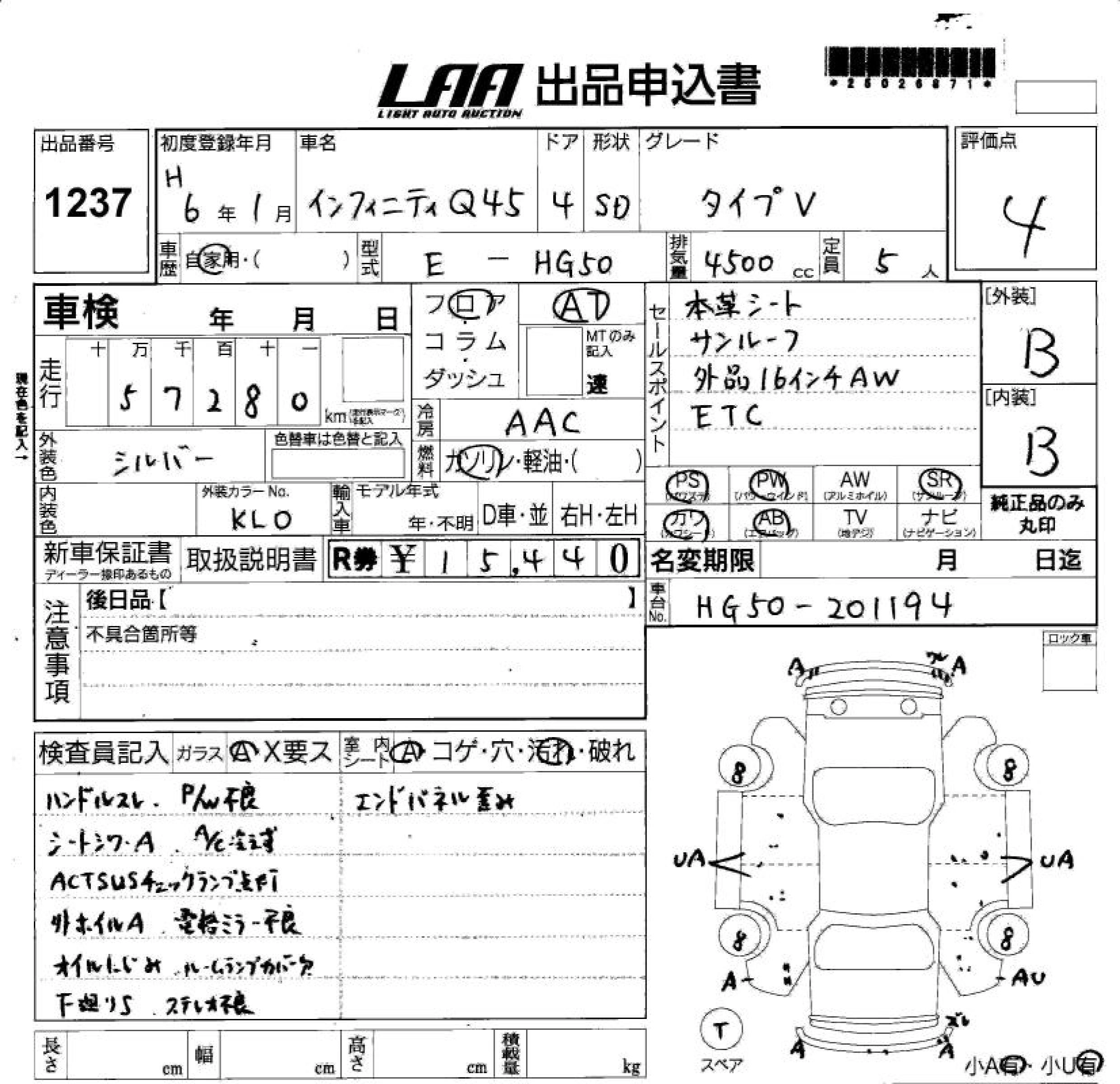 | TYPE V G PACKAGE | E-G50 | VH45DE | FR | 4AT | 4494cc | 280ps(206kW)/6000rpm | AИ-95 | 6 190 000 | |