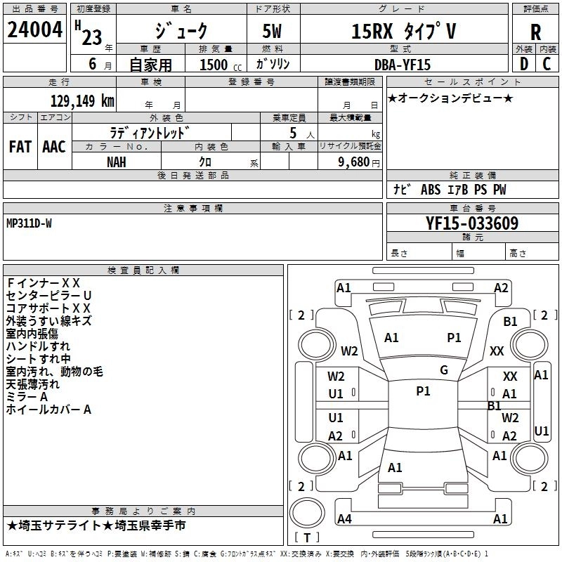 Год выпуска2011 Пробег 129 000 км КузовYF15 Комплектация15RX TYPE V