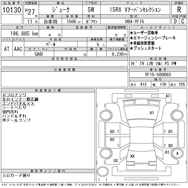 | 15RX V URBAN SELECTION PERSONALIZATION | DBA-YF15 | HR15DE | FF | CVT | 1498cc | 114ps(84kW)/6000rpm | AИ-92 | 2 274 480 | |