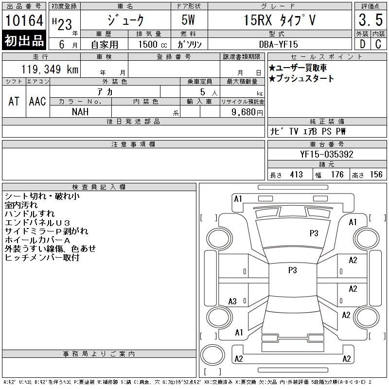 | 15RS TYPE V | DBA-YF15 | HR15DE | FF | CVT | 1498cc | 114ps(84kW)/6000rpm | AИ-92 | 1 620 150 |