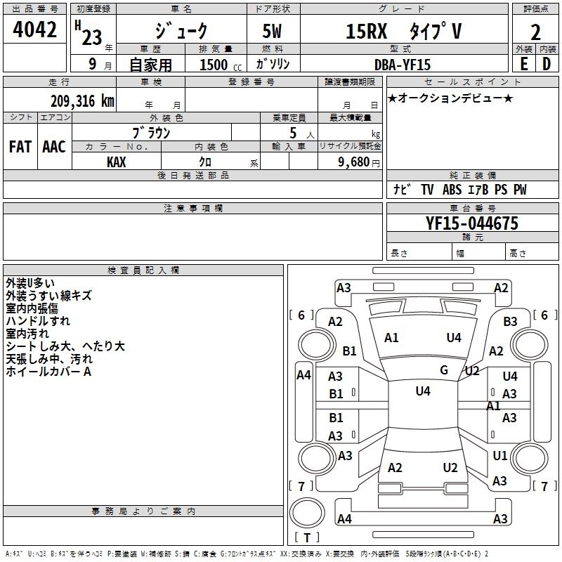 Год выпуска2011 Пробег 209 000 км КузовYF15 Комплектация15RX TYPE V