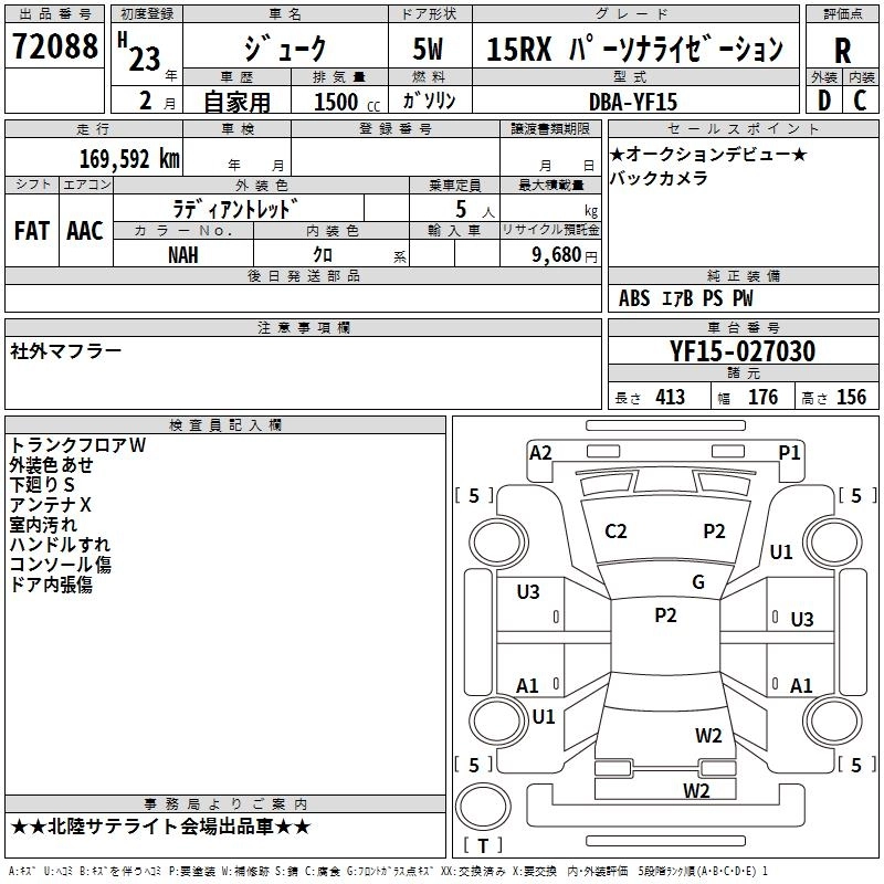 Год выпуска2011 Пробег 170 000 км КузовYF15 Комплектация15RXPA-SONALAIZE-SHON