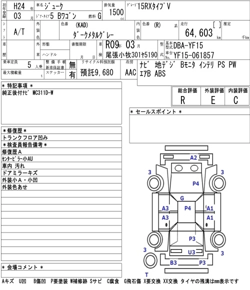 | 15RS TYPE V | DBA-YF15 | HR15DE | FF | CVT | 1498cc | 114ps(84kW)/6000rpm | AИ-92 | 1 620 150 |