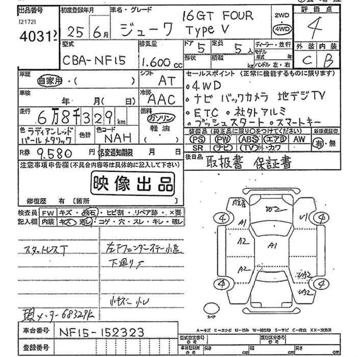 | 16GT FOUR TYPE V | CBA-NF15 | MR16DDT | Full-time 4WD | CVT | 1618cc | 190ps(140kW)/5600rpm | AИ-95 | 2 483 250 | |