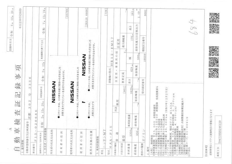 X 6AA-P15 HR12DE FF CVT 1198cc 82ps(60kW)/6000rpm AИ-92 2 759 900