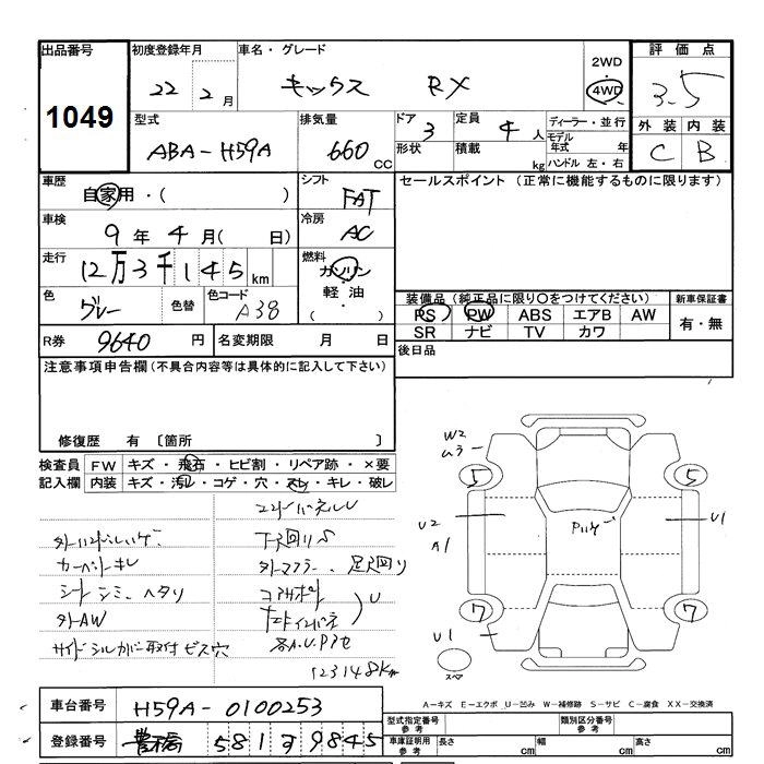 Год выпуска2010 Пробег 123 000 км КузовH59A Комплектация4WD RX