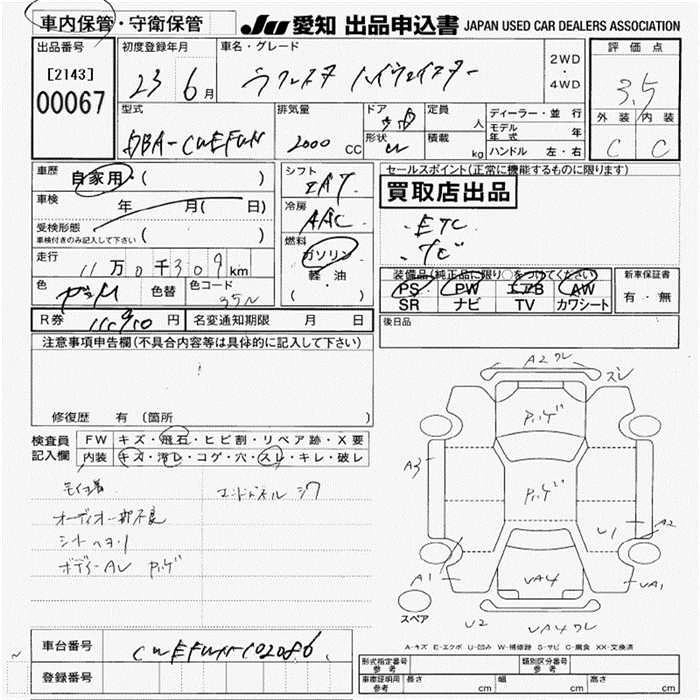 | HIGHWAY STAR AERO PACKAGE | DBA-CWEAWN | LF-VE | Full-time 4WD | 4AT | 1998cc | 139ps(102kW)/6500rpm | AИ-92 | 2 341 500 | |