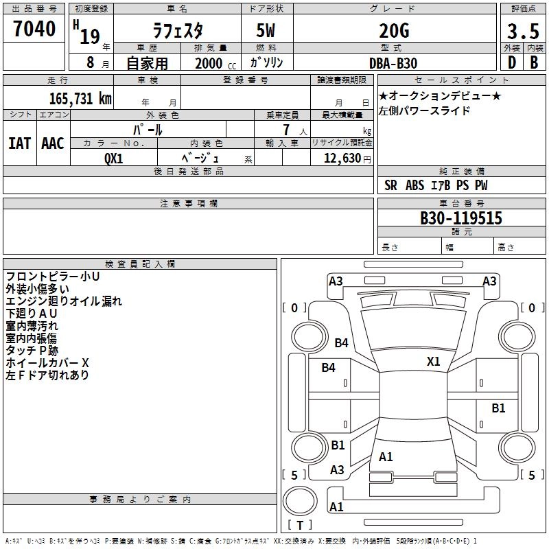 | 20G | DBA-B30 | MR20DE | FF | CVT | 1997cc | 137ps(101kW)/5200rpm | AИ-92 | 2 047 500 | |