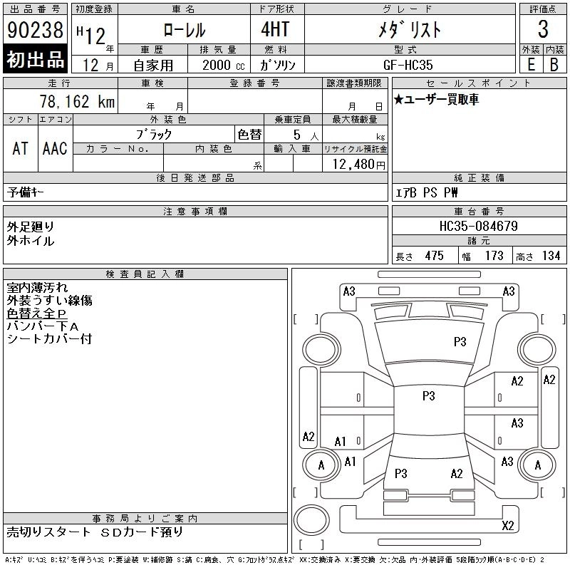 | 25MEDALIST NAVI EDITION | GF-GC35 | RB25DE | FR | 4AT | 2498cc | 200ps(147kW)/6000rpm | AИ-95 | 2 784 000 | |