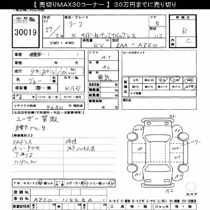 | S AERO STYLE(30KWH) | ZAA-AZE0 | ---- | FF | CVT | ----cc | ----ps(----kW)/----rpm | Электричество | 3 500 280 | |