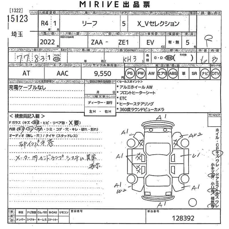 NISSAN LEAF 2022 г., лот № 15123