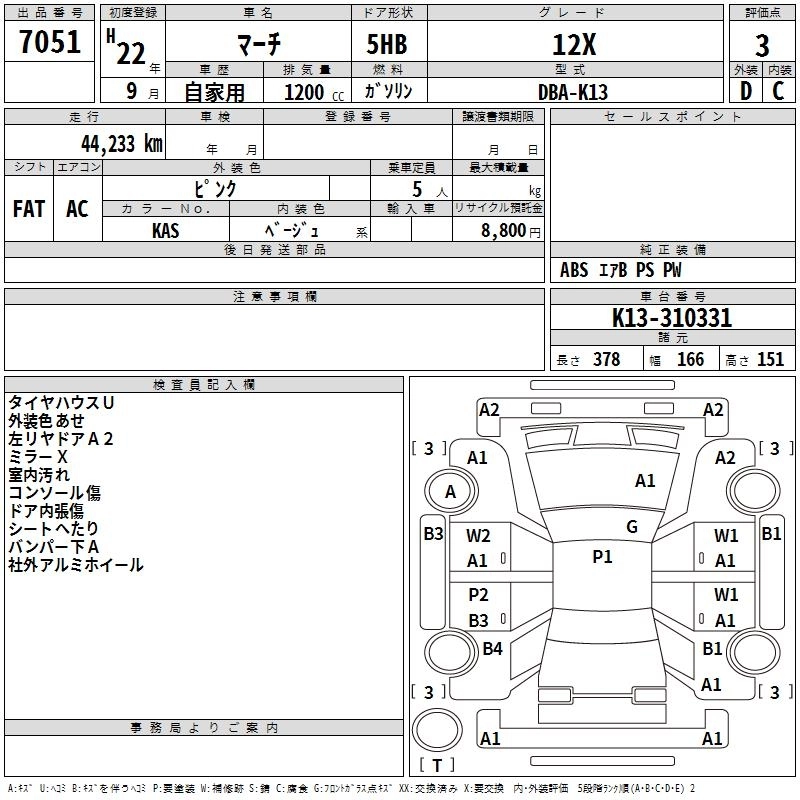 | 12S | DBA-K13 | HR12DE | FF | CVT | 1198cc | 79ps(58kW)/6000rpm | AИ-92 | 999 600 | |