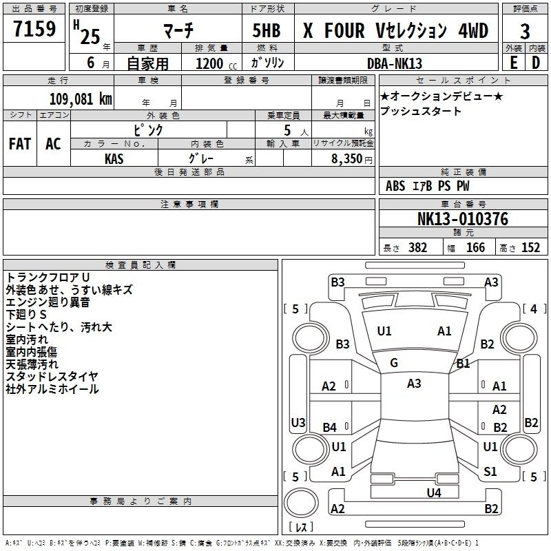 NISSAN MARCH 2013 г., лот № 7159
