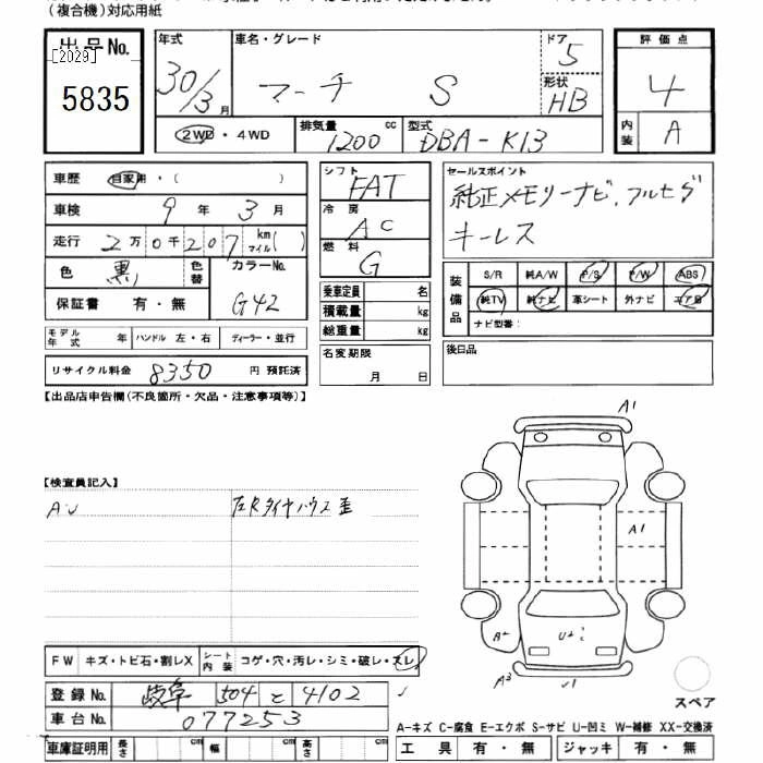 NISSAN MARCH 2018 г., лот № 5835