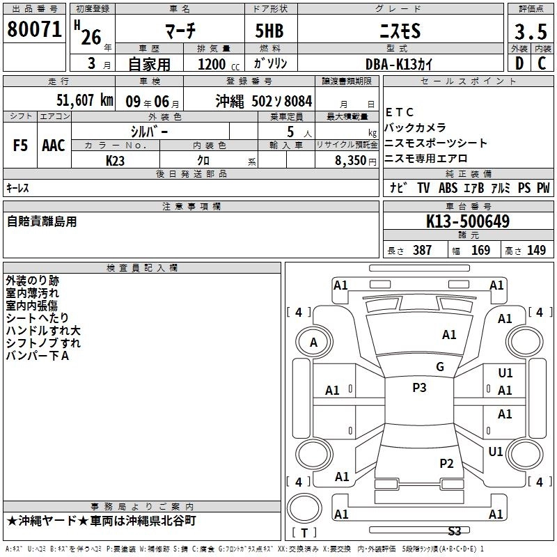 | X | DBA-K13 | HR12DE | FF | CVT | 1198cc | 79ps(58kW)/6000rpm | AИ-92 | 1 316 520 | |
