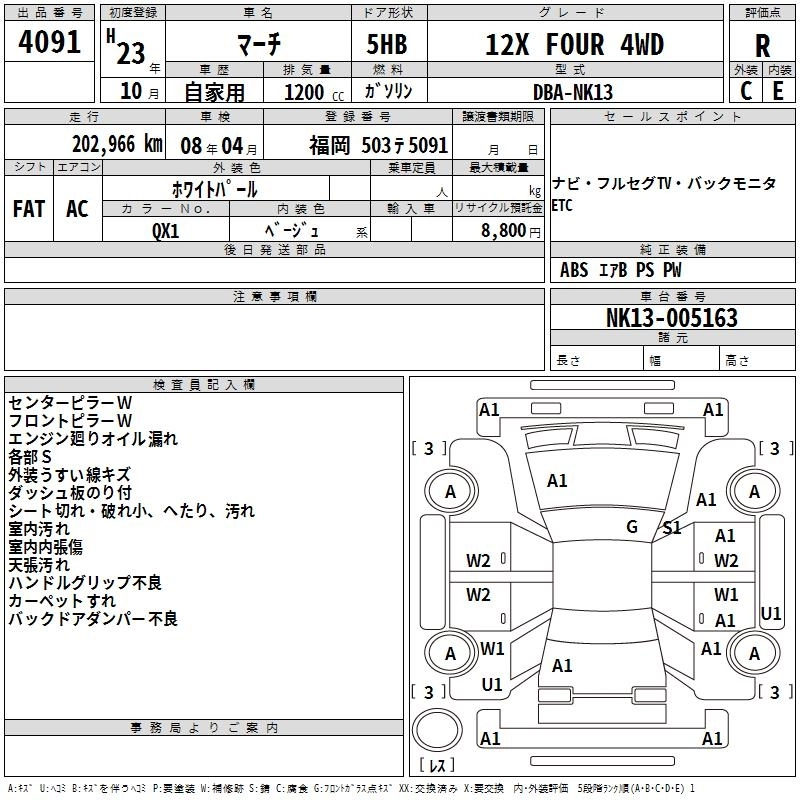 | 12S V PACKAGE | DBA-K13 | HR12DE | FF | CVT | 1198cc | 79ps(58kW)/6000rpm | AИ-92 | 1 036 350 |