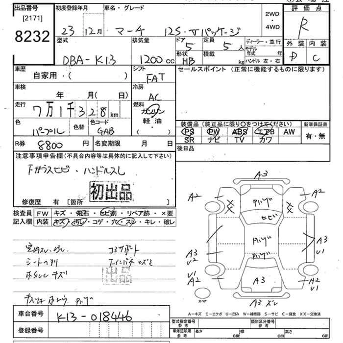 | 12S V PACKAGE | DBA-K13 | HR12DE | FF | CVT | 1198cc | 79ps(58kW)/6000rpm | AИ-92 | 1 036 350 |