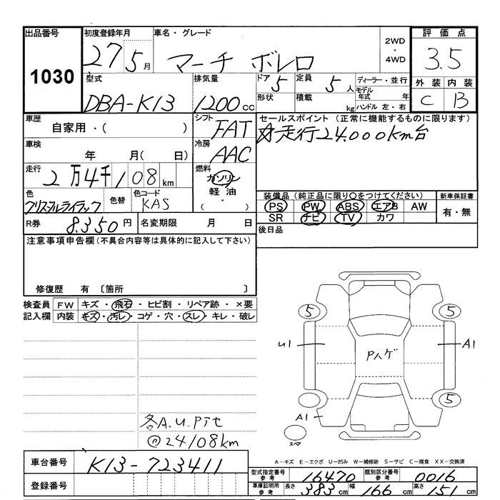 NISSAN MARCH 2015 г., лот № 1030