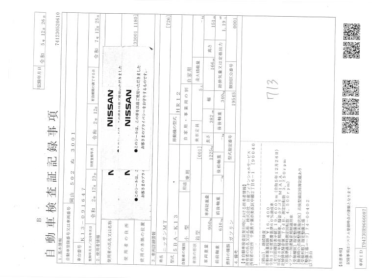 G PERSONALIZATION 5BA-K13 HR12DE FF CVT 1198cc 79ps(58kW)/6000rpm AИ-92 1 702 800