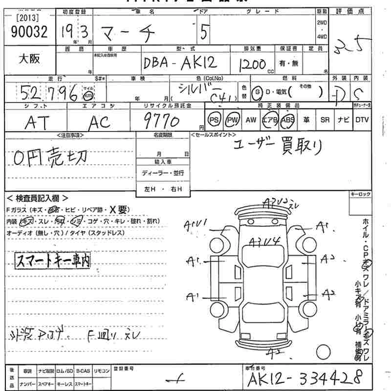 | 12S PLUS NAVI HDD | DBA-AK12 | CR12DE | FF | 4AT | 1240cc | 90ps(66kW)/5600rpm | AИ-92 | 1 261 050 | |