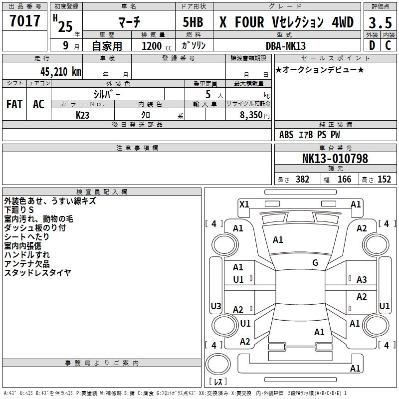 | X | DBA-K13 | HR12DE | FF | CVT | 1198cc | 79ps(58kW)/6000rpm | AИ-92 | 1 211 700 | |