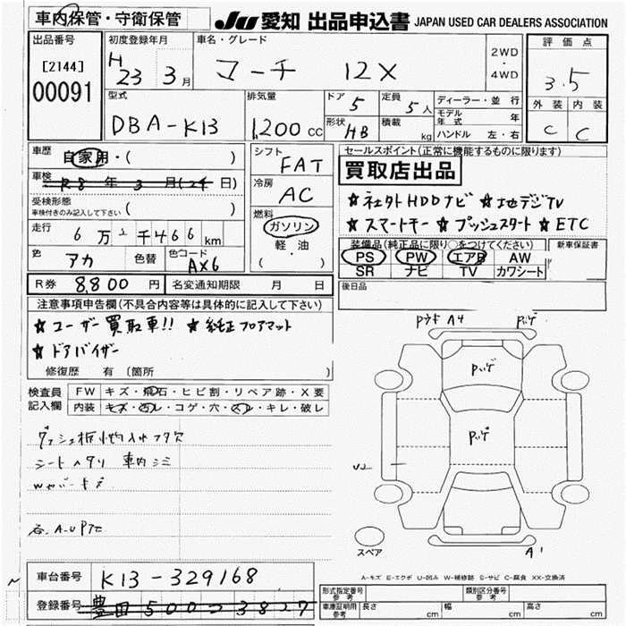 | 12S | DBA-K13 | HR12DE | FF | CVT | 1198cc | 79ps(58kW)/6000rpm | AИ-92 | 999 600 | |