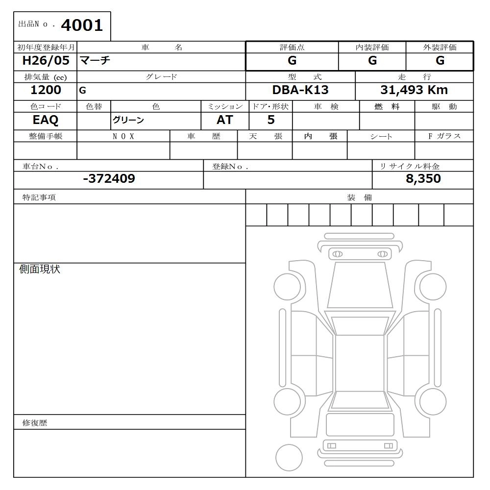 | X | DBA-K13 | HR12DE | FF | CVT | 1198cc | 79ps(58kW)/6000rpm | AИ-92 | 1 316 520 | |