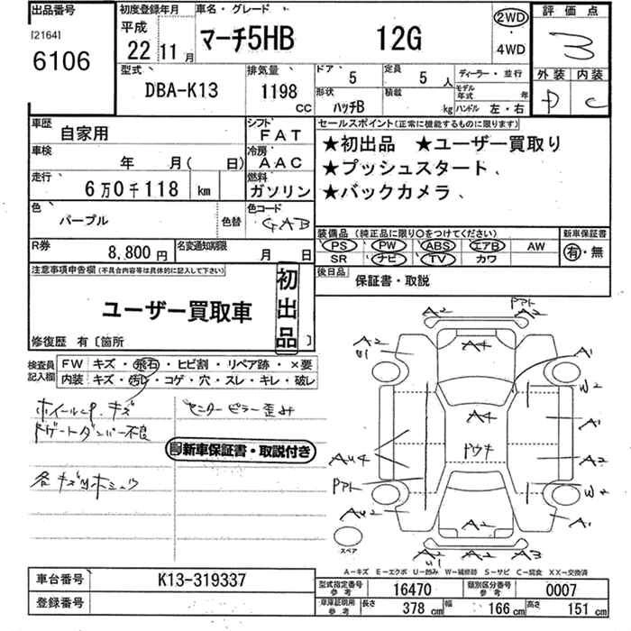 | 12S | DBA-K13 | HR12DE | FF | CVT | 1198cc | 79ps(58kW)/6000rpm | AИ-92 | 999 600 | |