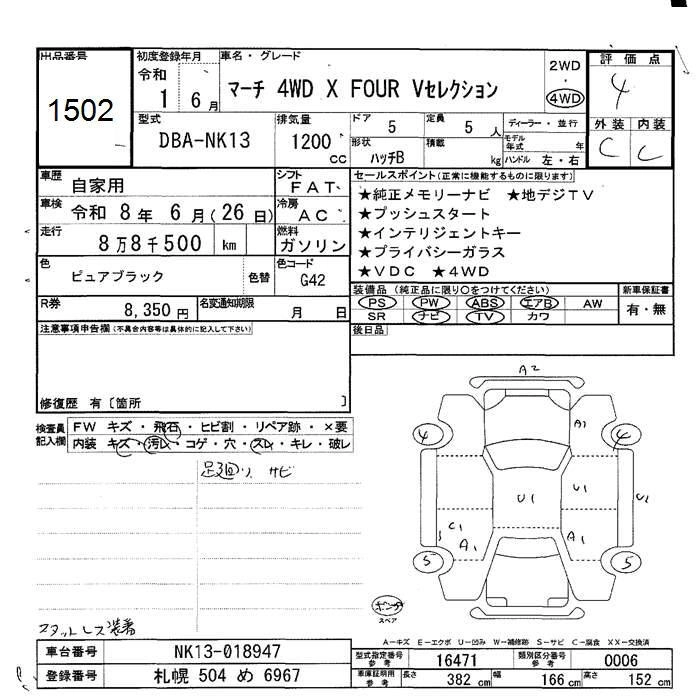 | X FOUR V SELECTION | DBA-NK13 | HR12DE | Full-time 4WD | CVT | 1198cc | 79ps(58kW)/6000rpm | AИ-92 | 1 579 600 | |