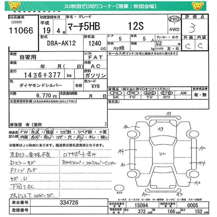 12S PLUS NAVI HDD DBA-AK12 CR12DE FF 4AT 1240cc 90ps(66kW)/5600rpm AИ-92 1 261 050