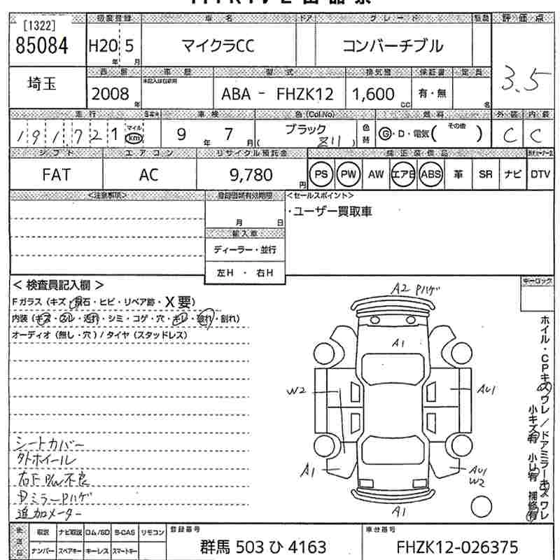 Статус выставлен на аукцион Лот 85084 Аукцион MIRIVE Saitama Дата аукциона 18.03.2026