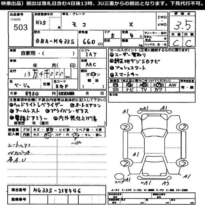 NISSAN MOCO 2013 г., лот № 503