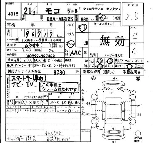 | G CHOCOLATIER AERO STYLE PLUS NAVI | CBA-MG22S | K6A | FF | 4AT | 658cc | 60ps(44kW)/6000rpm | AИ-92 | 1 402 800 | |