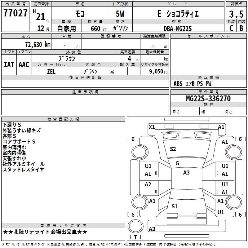 | G CHOCOLATIER AERO STYLE PLUS NAVI | CBA-MG22S | K6A | FF | 4AT | 658cc | 60ps(44kW)/6000rpm | AИ-92 | 1 402 800 | |