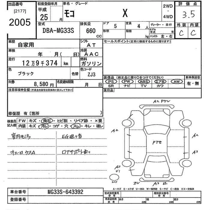 | X | DBA-MG33S | R06A | FF | CVT | 658cc | 52ps(38kW)/6000rpm | AИ-92 | 1 260 000 | |