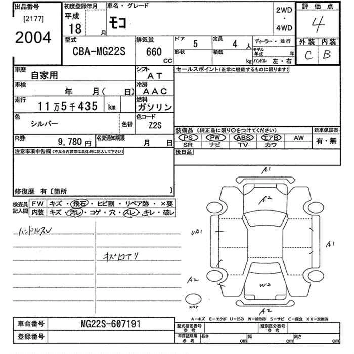 | G | CBA-MG22S | K6A | FF | 4AT | 658cc | 60ps(44kW)/6000rpm | AИ-92 | 1 247 400 | |