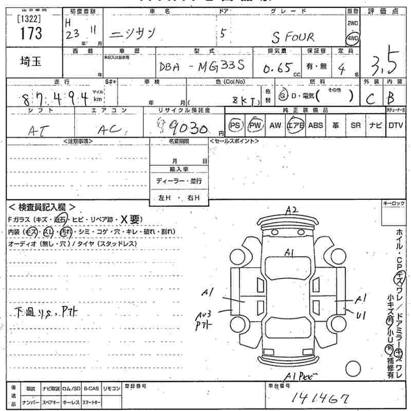 X IDLING STOP AERO STYLE DBA-MG33S R06A FF CVT 658cc 54ps(40kW)/6500rpm AИ-92 1 394 400