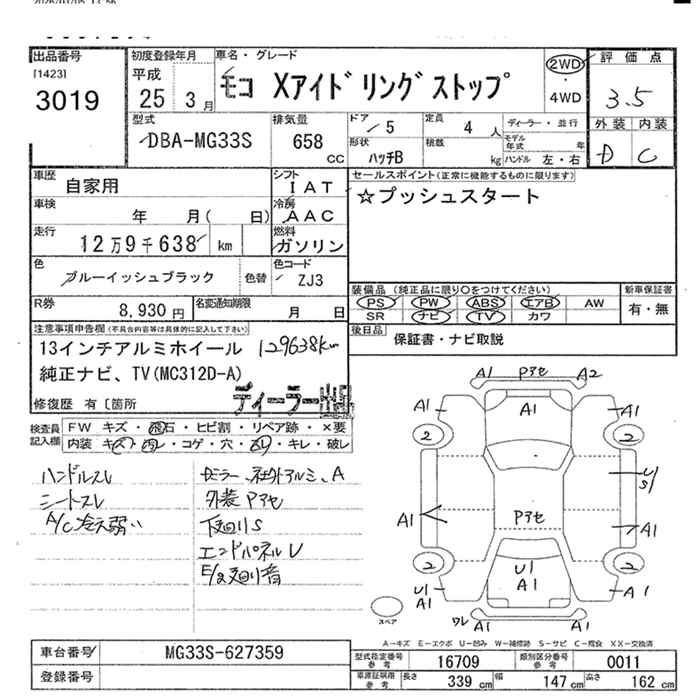 Год выпуска2013 Пробег 130 000 км КузовDBA-MG33S КомплектацияX IDLING S TOP 2WD