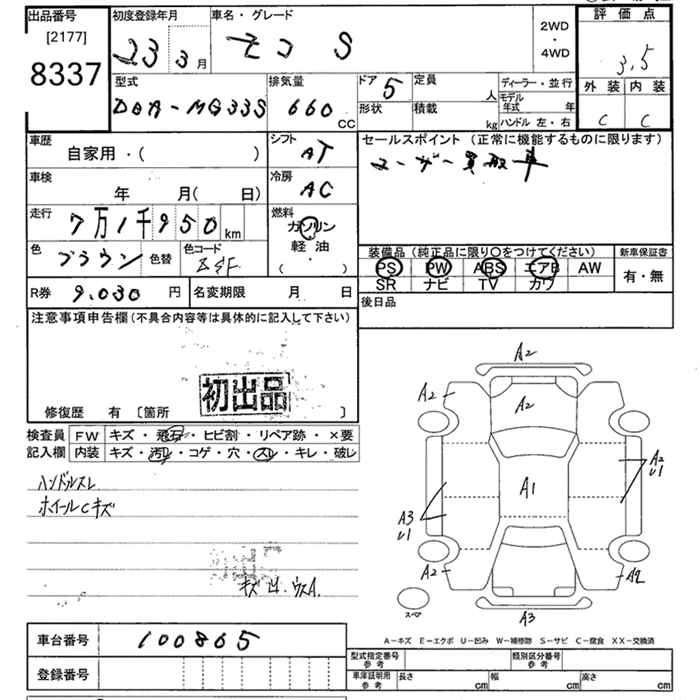 | S | DBA-MG33S | R06A | FF | CVT | 658cc | 54ps(40kW)/6500rpm | AИ-92 | 1 079 400 |