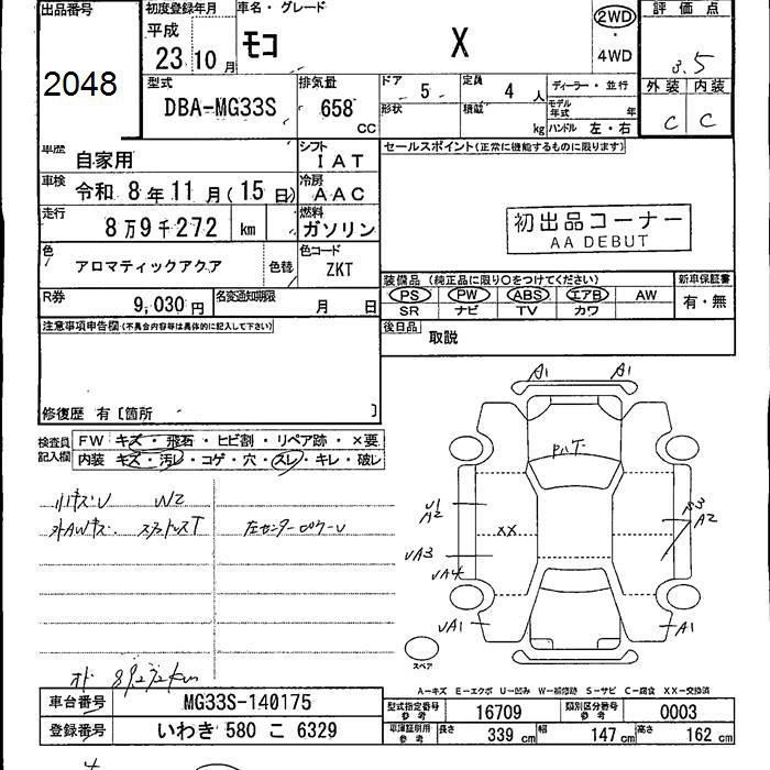 | X | DBA-MG33S | R06A | FF | CVT | 658cc | 54ps(40kW)/6500rpm | AИ-92 | 1 163 400 | |